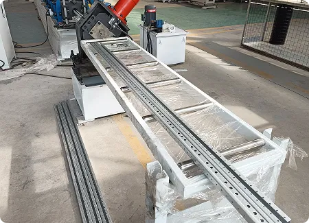The terminal equipment of the cold roll forming line. The receiving table collects the cut finished profiles, while the palletizer arranges them neatly into stacks through conveying, flipping, and stacking actions. This automates the sorting and stacking process, reducing manual handling, ensuring the products are tidy and damage-free, and facilitating efficient packaging and transportation.